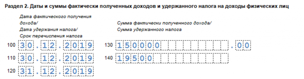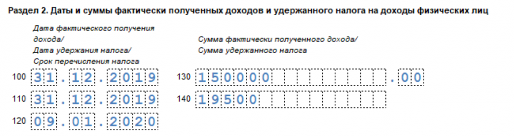 Раздел 2 можно заполнить двумя способами. Отличаются они датой получения дохода в строке 100.