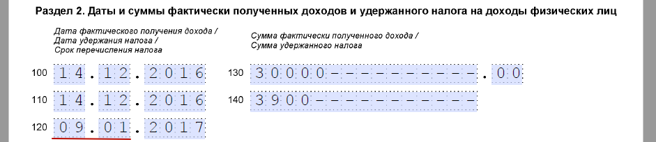 - строка 100 – 31.12.2016 (дата получения дохода);