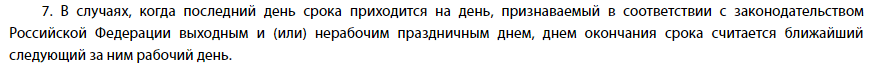 В письме от 16.05.2016 № БС-3-11/2169 ФНС уточняет: норма пункта 7 статьи 6.1 НК РФ касается именно последнего дня срока, установленного налоговым законодательством, а не даты фактического получения дохода. То есть последняя – переносу не подлежит. Это особенно актуально для тех предприятий, где установлена 6-дневная или 7-дневная рабочая неделя.