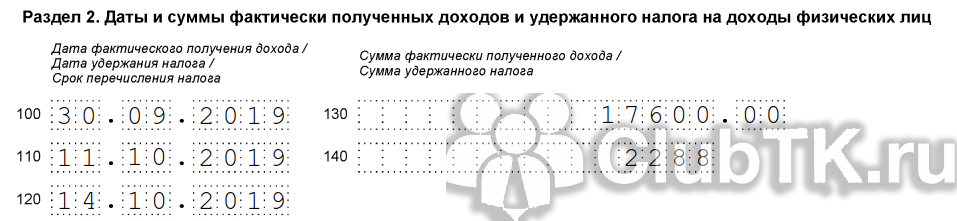 Рассмотрим примеры заполнения 6-НДФЛ за 2019 год, пошаговая инструкция к разделу 2 отчета.