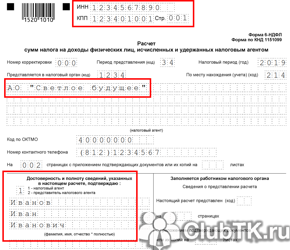 1. Начинаем заполнение 6-НДФЛ с титульного листа