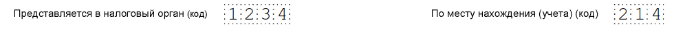 Код налоговой, в которую сдается отчетность, и код места предоставления: