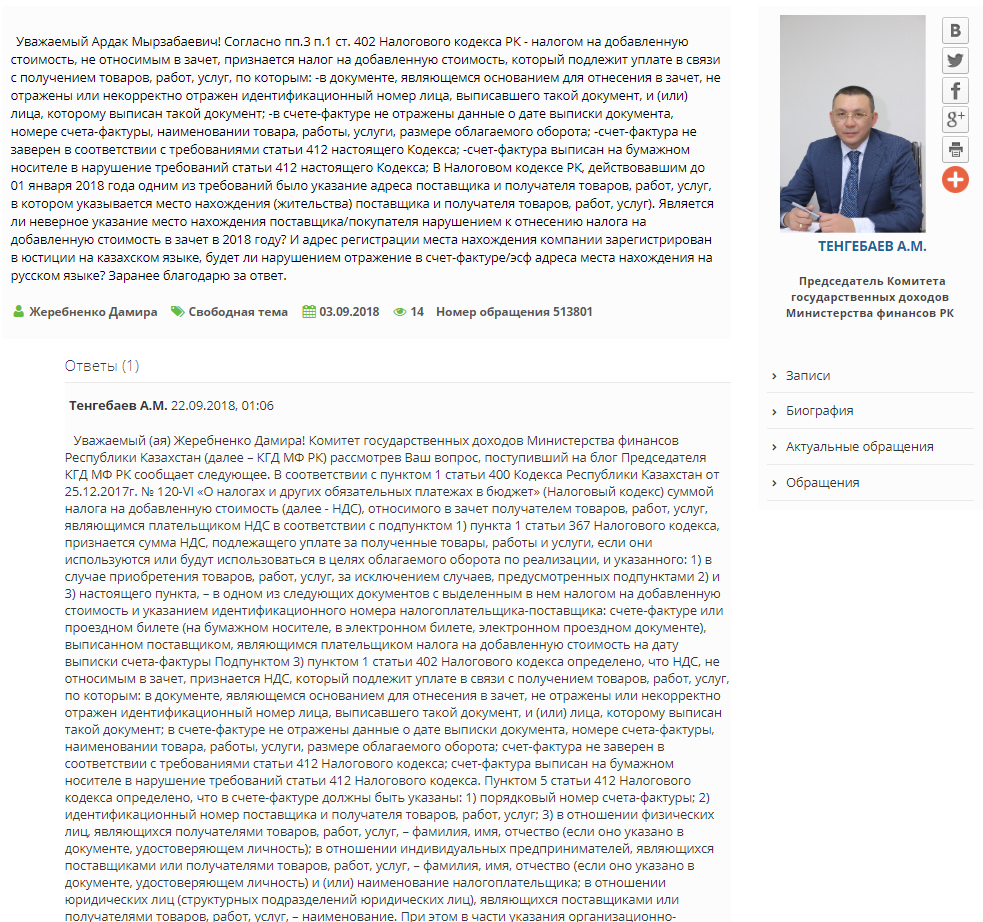На основании вышеизложенного, сумма НДС по счет-фактурам выписанным с неверным указанием места нахождения поставщика (покупателя), а также с указанием адреса регистрации местонахождения на русском языке может быть отнесена в зачет при соблюдении условий, установленных статьей 400 Налогового кодекса.