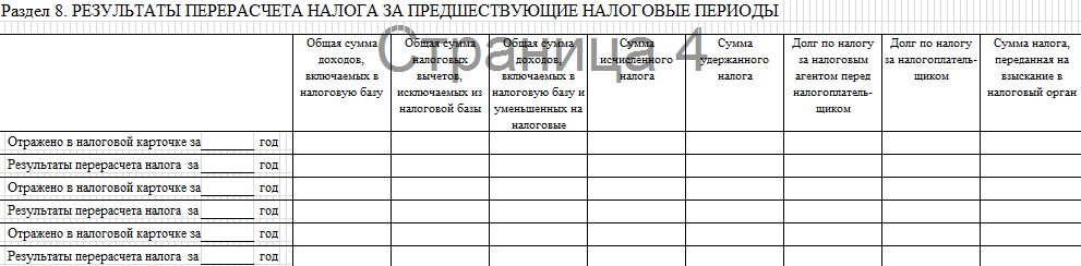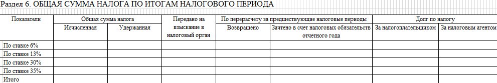 Обобщающий раздел формы фактически содержит данные, используемые при составлении формы 2-НДФЛ. Обязательными полями признаны: