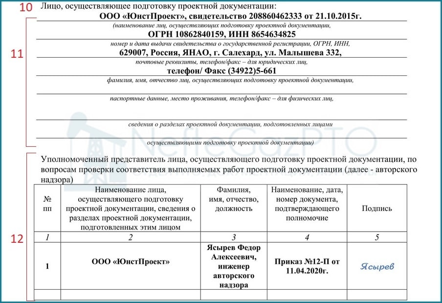 10. Указывается наименование проектной организации. (Юр. лицо осуществляющего разработку проектной документации)