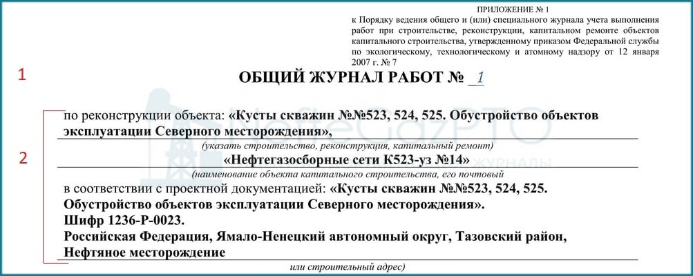 Как заполнять общий журнал работ рассмотрим на ниже изображённом примере: