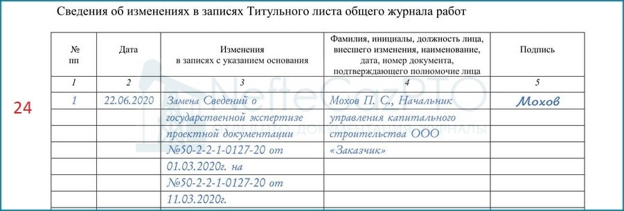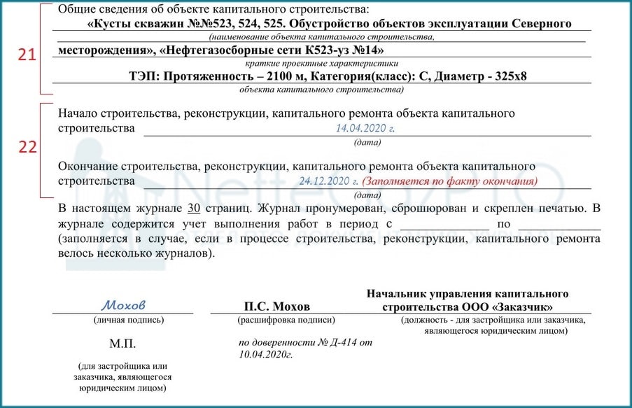- дату выдачи журнала, закрепленную печатью подрядчика;