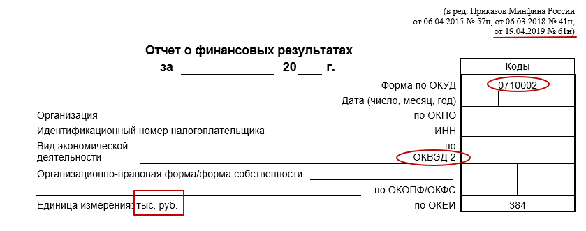 В заголовочной части отчета о финансовых результатах код формы по ОКУД приведен в соответствие с постановлением Госстандарта России от 30.12.1993 № 299 в действующей редакции приказов Росстандарта. Теперь он – 0710002.