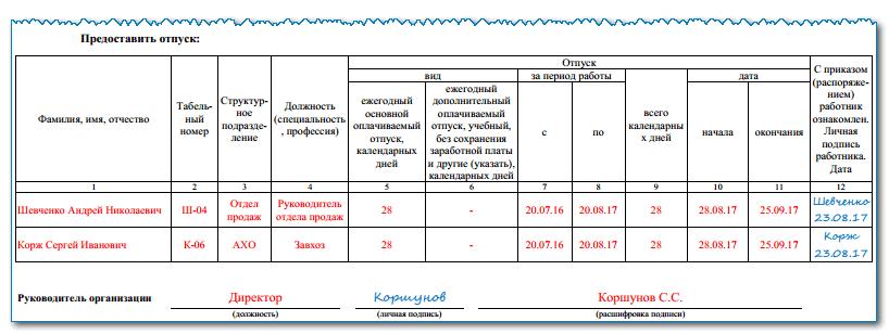 Формы приказа о предоставлении ежегодного основного оплачиваемого отпуска