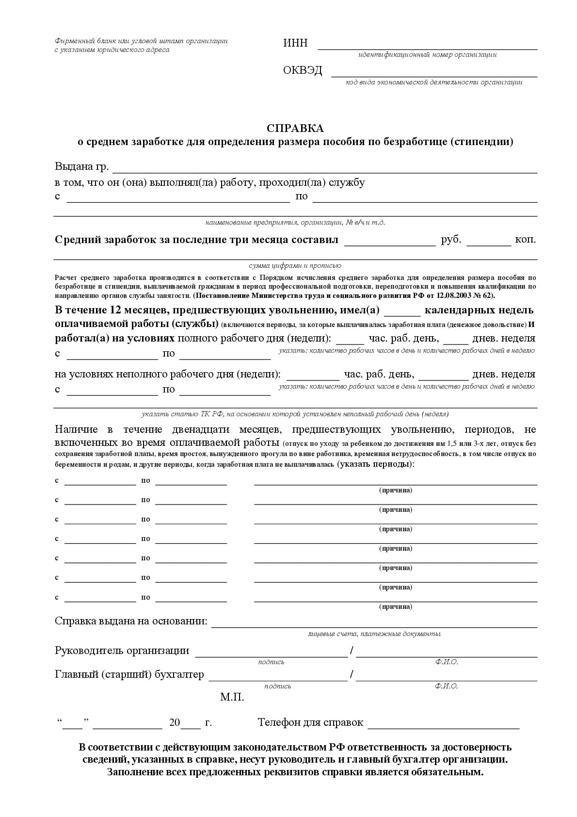Для присвоения статуса безработного гражданину необходимо предъявить в ЦЗН справку с последнего места работы установленной формы. Если до обращения в центр занятости трудового стажа не было (выпускники вузов), то документ предоставлять не надо.