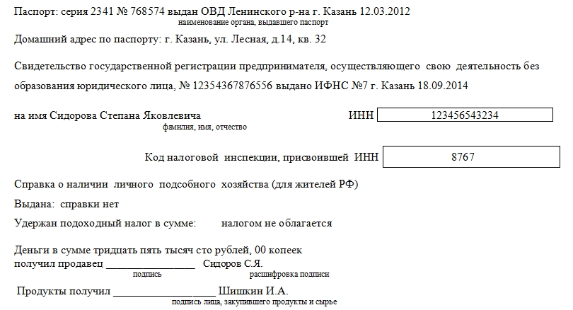 - все, что касается продавца: его паспортные данные (серия, номер, когда, где и кем выдан), адрес регистрации места жительства (по паспорту), номер свидетельства о государственной регистрации предпринимателя (когда и кем выдано), фамилия, имя, отчество, номер ИНН (включая код налоговой службы, выдавшей ИНН);