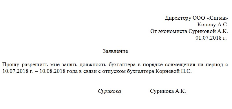 - собственно просьбу о совмещении,
