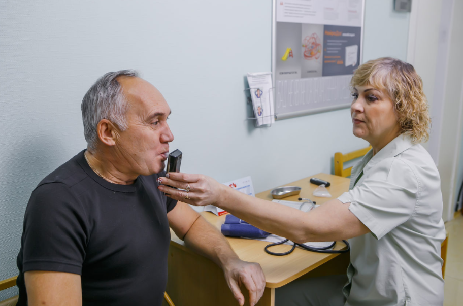 Для начала сам осмотр предполагает визуальную оценку состояния человека, проведение опроса о здоровье и осмотр кожи и слизистых оболочек.