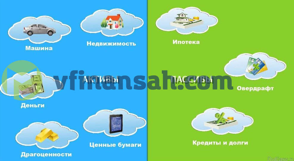 Только грамотно распределяя активы и пассивы можно прийти к материальному благополучию. Если формулировать наиболее просто, активы – это всё, что приносит доходы, то есть это положительные денежные потоки, преумножающие капитал. Пассивы – это всё, на что расходуются деньги, отрицательные денежные потоки, другими словами, расходы.