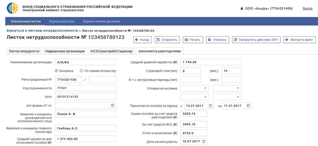 Сотрудник может посмотреть свой электронный больничный лист в кабинете ФСС (https://lk.fss.ru/recipient/). Больше не придется для этого бегать к бухгалтеру и отвлекать от работы коллег.