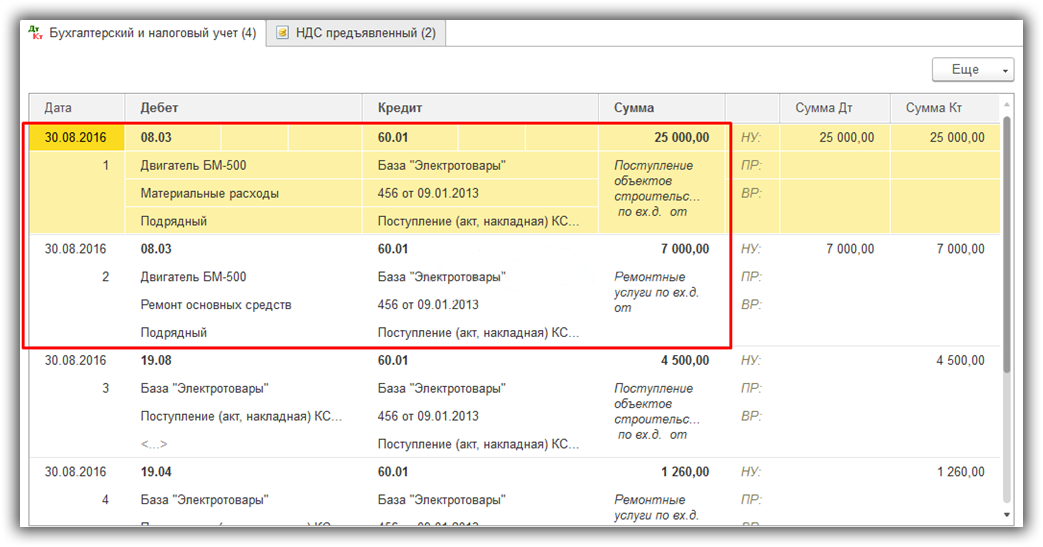 Счет 08.03 отражает в себе не только цену самого двигателя, но и траты на монтажные работы при его установке.