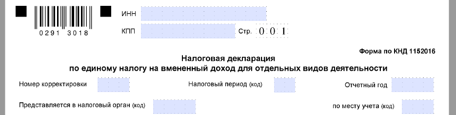 | 0291 3018 | 0291 4015 | Первый лист декларации по ЕНВД |