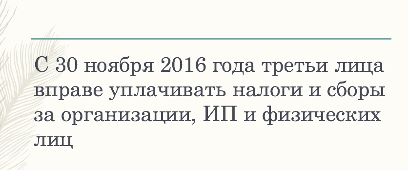 Уплата налогов и сборов третьими лицами с 30 ноября 2016 года