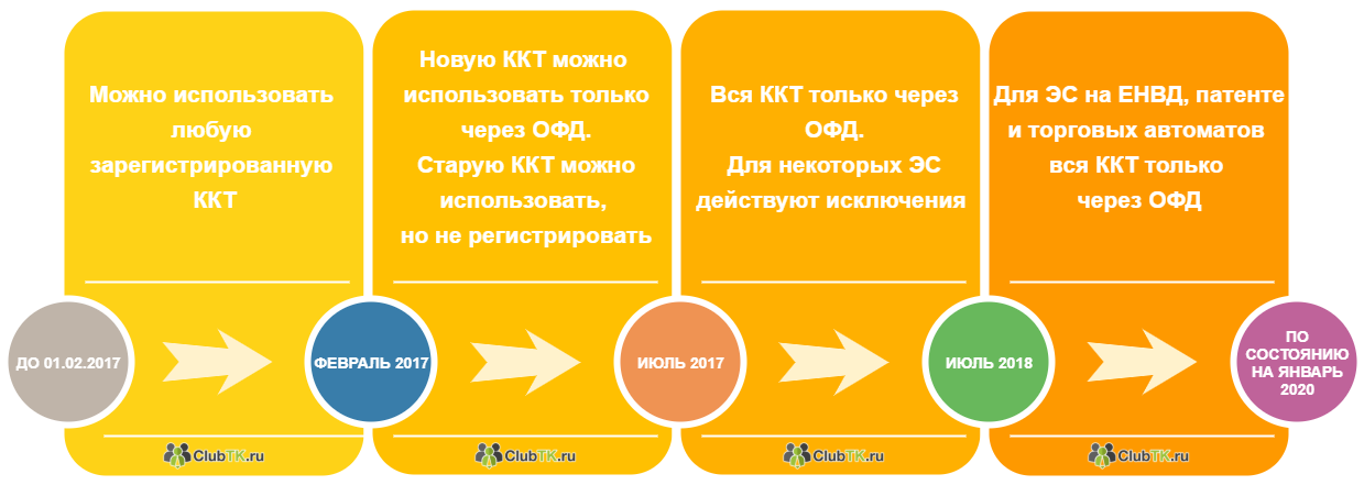 У экономических субъектов внедрение онлайн-касс происходит поэтапно. В соответствии с п. 4 ст. 7 Федерального закона от 03.07.2016 № 290, с 01.02.2017 новую контрольно-кассовую технику допускается использовать только через оператора фискальных данных.
