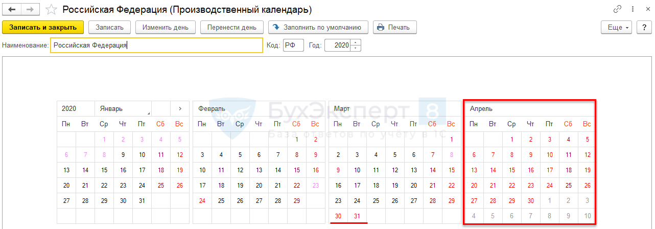 При обновлении производственного календаря период с 30.03.2020 по 30.04.2020 становится нерабочим: