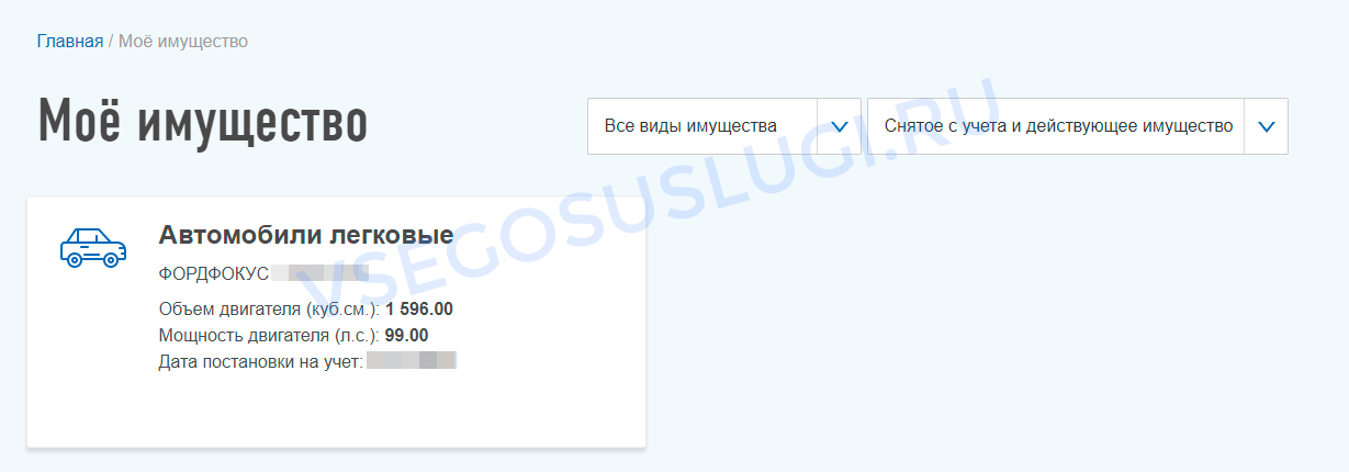 В разделе «Мое имущество» находится информация по объектам, который может включать в себя недвижимое имущество, земельные участки, личный транспорт и т.д. Именно по этим объектам формируется налоговая база, которой облагается гражданин.