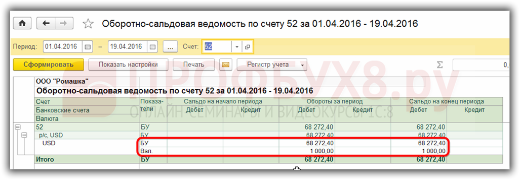 Эта особенность позволяет в стандартных отчетах программы 1С 8.3 видеть остатки на данных счетах не только в регламентированной валюте – рублях, а также и в нужной иностранной валюте: