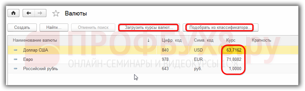 добавить требующиеся для работы в 1С 8.3 иностранные валюты: