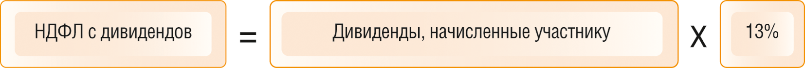 Рассчитайте налог с дивидендов, начисленных участнику, по формуле: