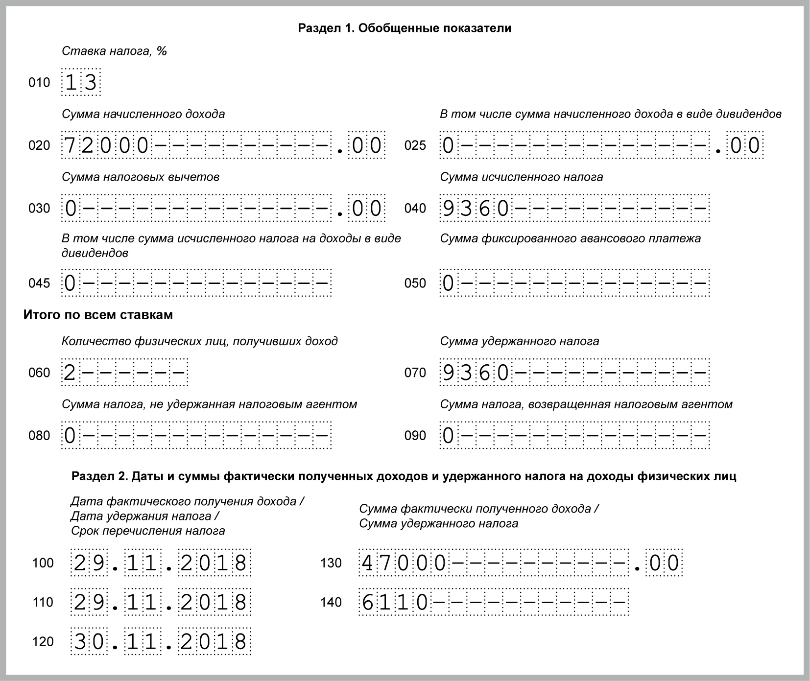 - Раздела 2 «Даты и суммы фактически полученных доходов и удержанного налога на доходы физических лиц».
