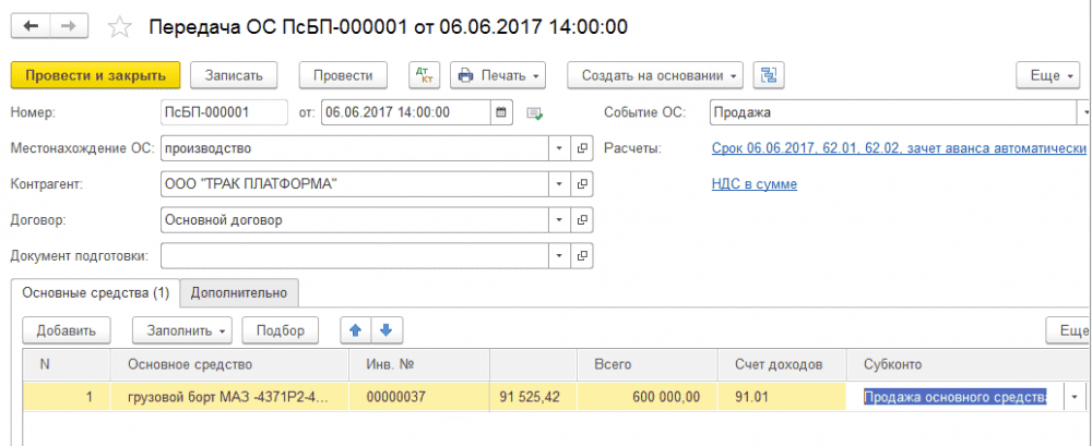 - Дт 02 Кт 01 на 24 035 рублей по выбывающему объекту (продажа ОС);