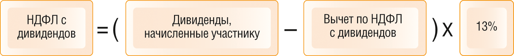 Рассчитайте налог с дивидендов, начисленных участнику, по формуле: