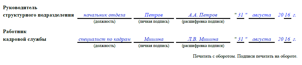 - Последняя подпись остается за руководителем структурного подразделения.
