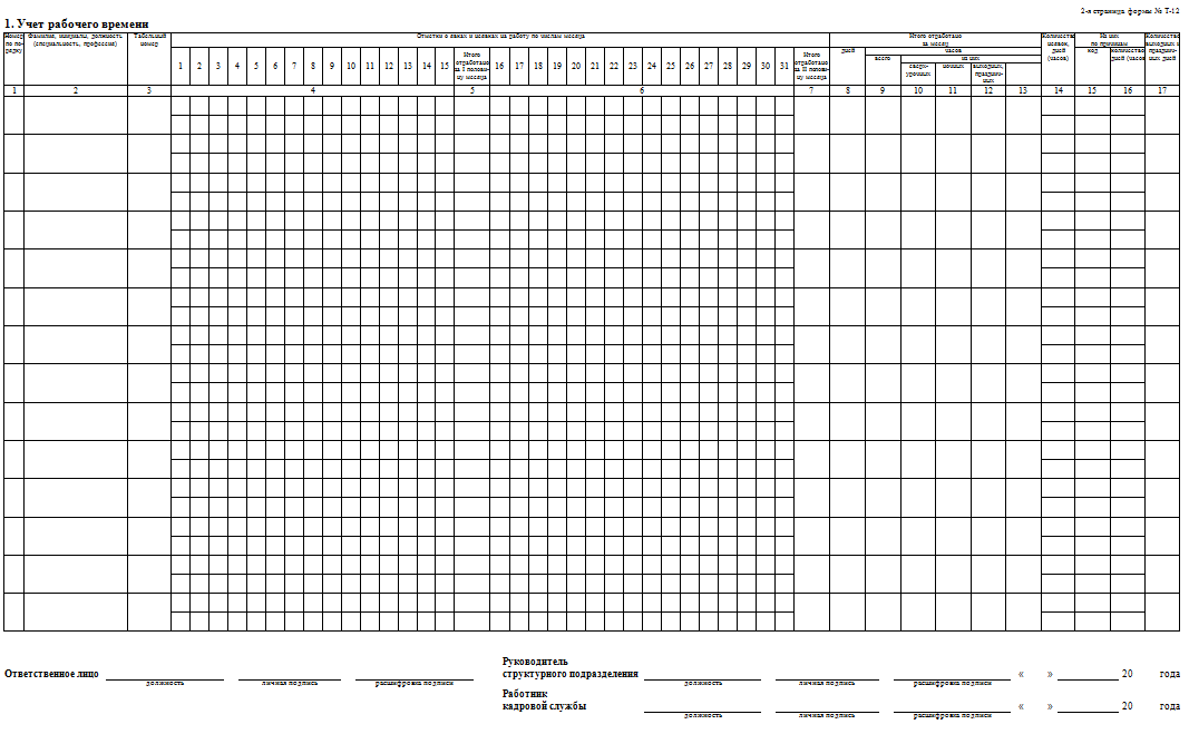- После заполнения (по истечению месяца) документ передают в отдел кадров.