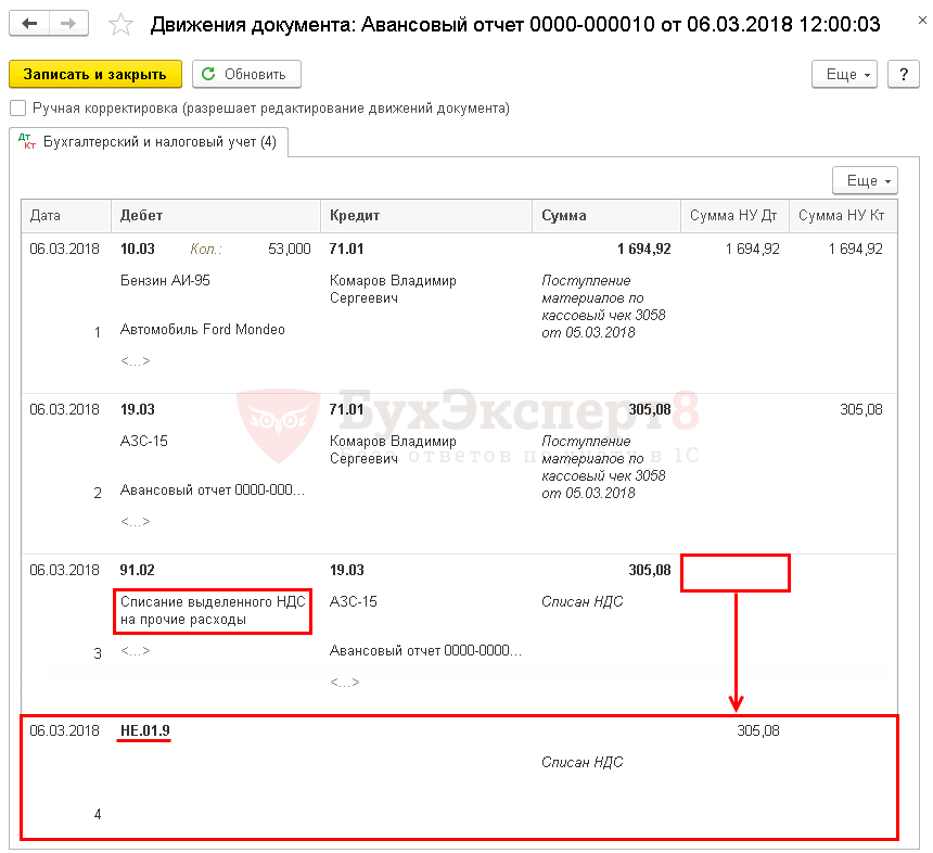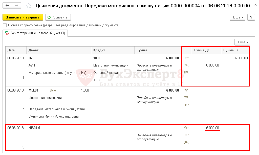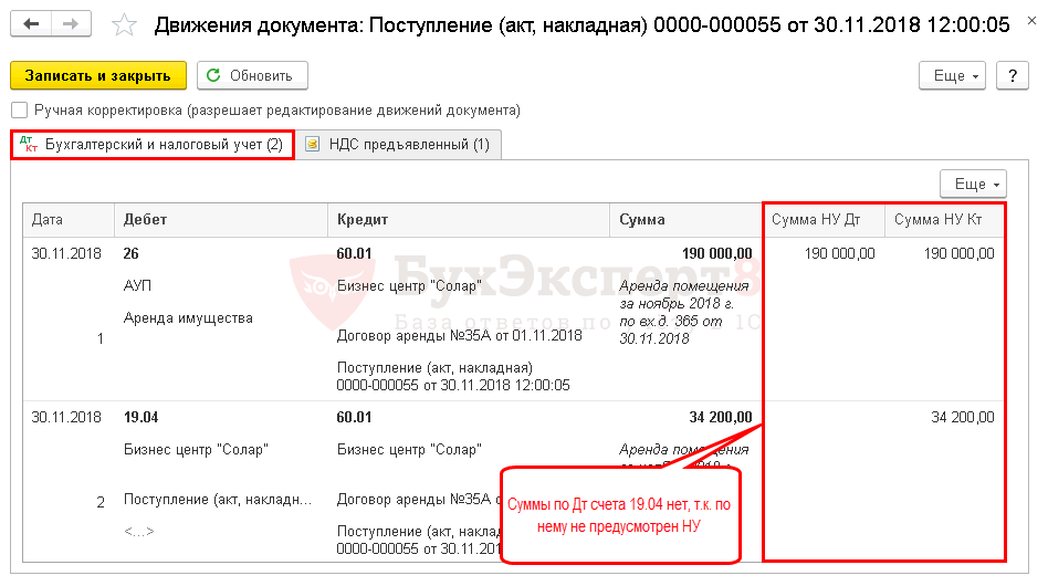 В проводках автоматически отразятся временные и постоянные разницы, если БУ и НУ имеют расхождения.