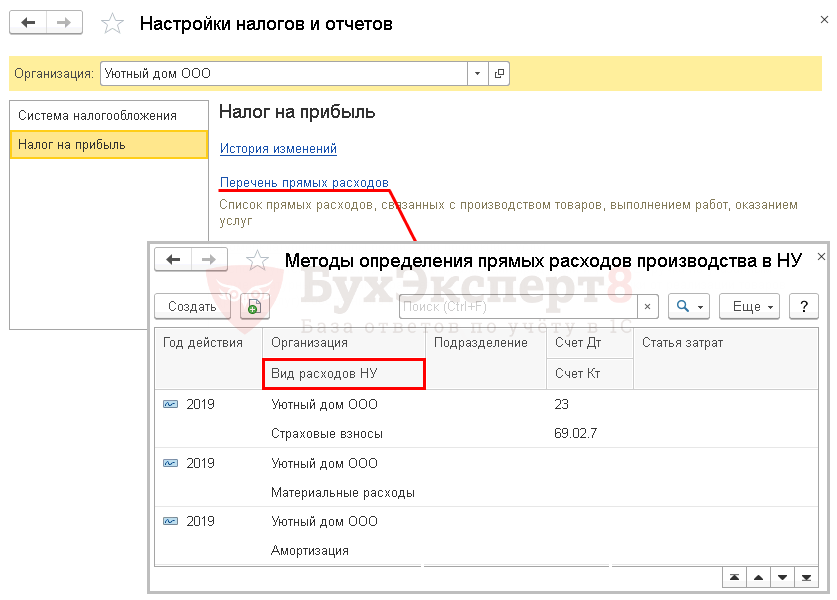К прямым расходам относятся затраты, определенные в Перечне прямых расходов в настройках учетной политики по НУ.