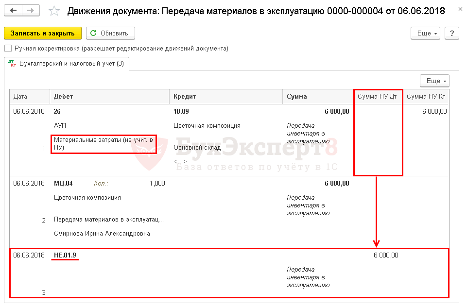 Если в Статье затрат установлен Вид расхода — Не учитываемые в целях налогообложения, то такие затраты будут отражены в НУ как не учитываемые расходы в Дт субсчетов НЕ.