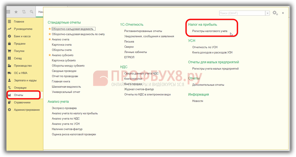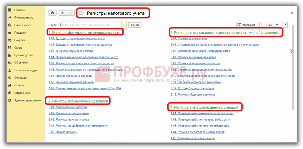Формы регистров налогового учета и порядок их отражения в 1С 8.3