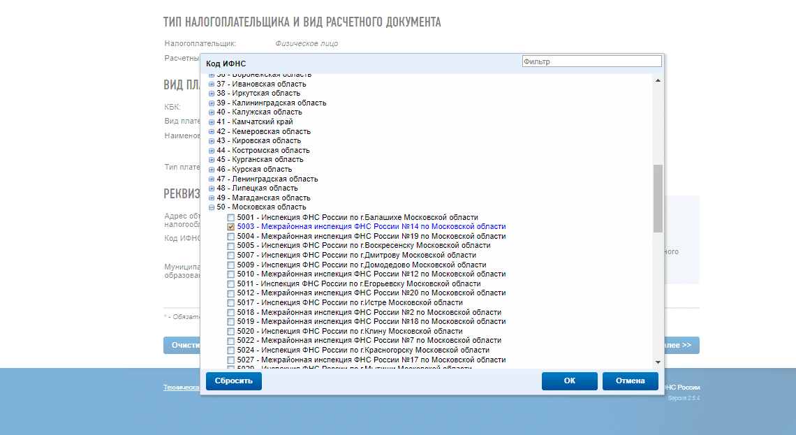 Шаг 6. Заполняем – в нашем случае это ФНС. Выбираем территориальное отделение инспекции.