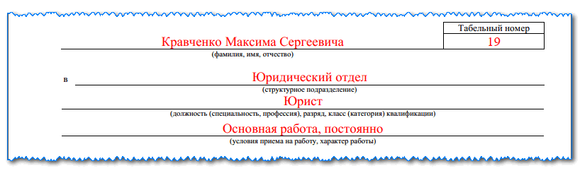 Обратите внимание, что приказ о приеме на работу заполняется только после подписания трудового договора, а не до, как ошибочно думают многие. Рассмотрим по порядку заполнение личных сведений сверху вниз