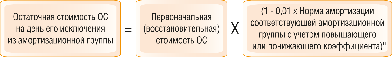 где n — количество месяцев, прошедших с 1-го числа месяца, следующего за месяцем включения в амортизационную группу (подгруппу) объекта амортизируемого имущества, до 1-го числа месяца, следующего за месяцем выбытия данного объекта из группы (подгруппы) (Письмо Минфина России от 16.03.2010 N 03-03-06/2/47).