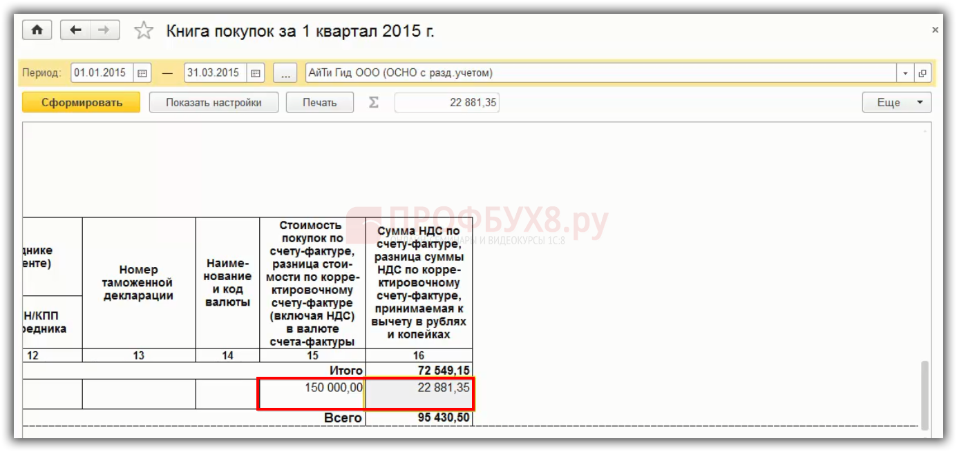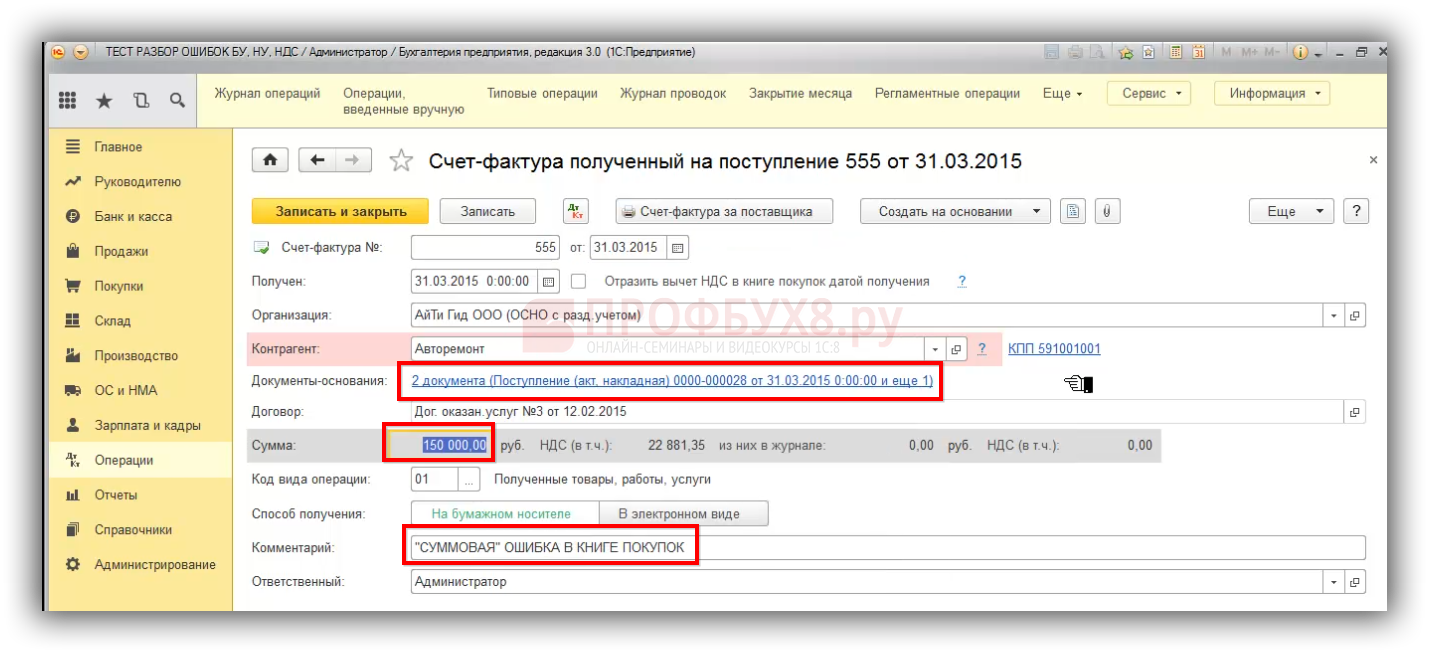 Исправление в 1С 8.3 «суммовой ошибки» в счете-фактуре в Книге покупок