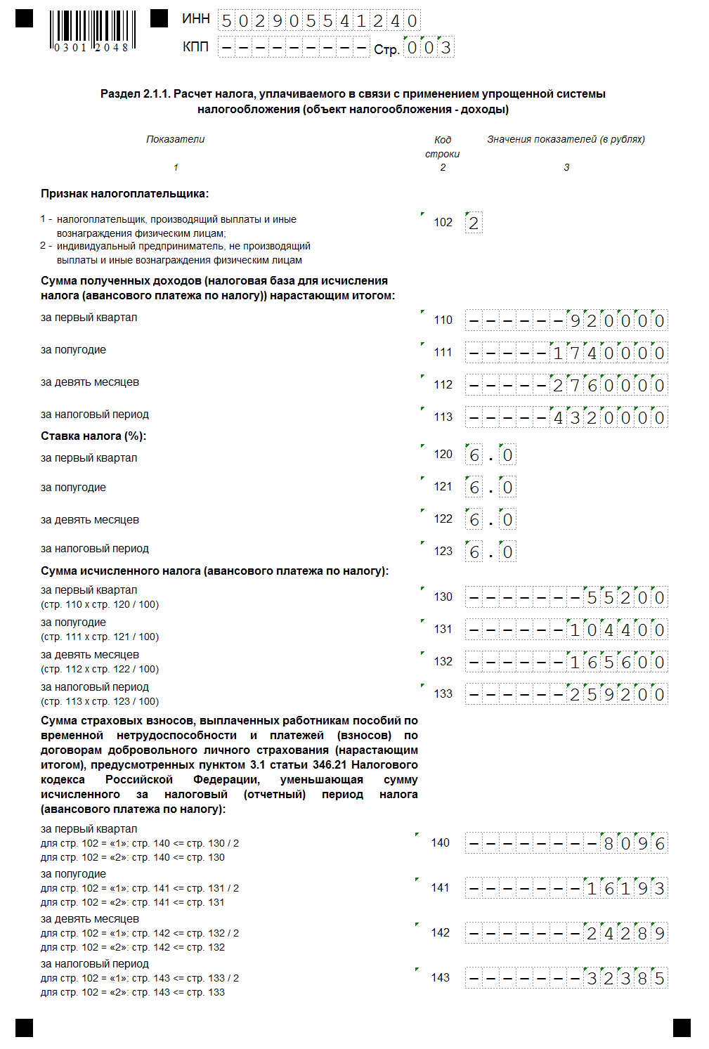 - доходы, расходы, сумму налога, страховые взносы требуется указывать за каждый квартал (полугодие, девять месяцев), а не только за год.