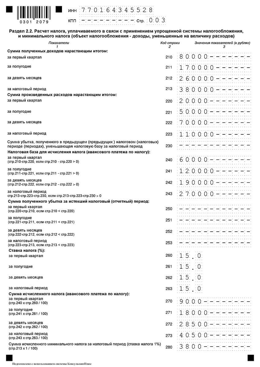 - разделы 1.2 и 2.2 заполняются теми, кто в качестве объекта обложения выбрал «доходы минус расходы».