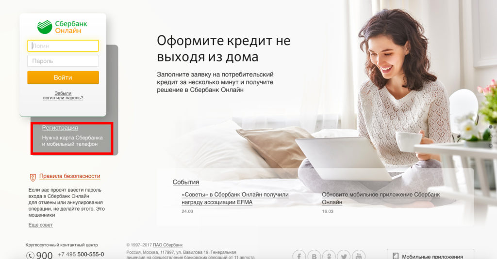 - придумать логин и пароль, которые в дальнейшем будут использоваться для входа в Сбербанк Онлайн.