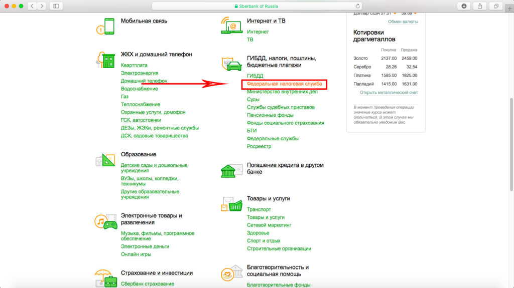 Шаг 3. Отметить подпункт «ГИБДД, налоги, пошлины, бюджетные платежи».