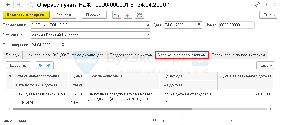 - Сумма — сумма удержанного налога;
