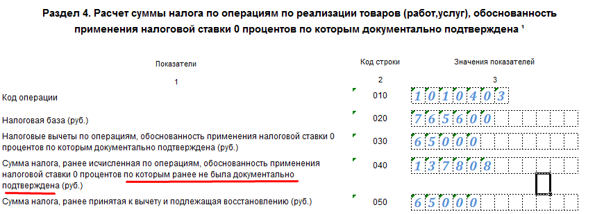 040 — НДС, исчисленный по экспорту из-за отсутствия документов;