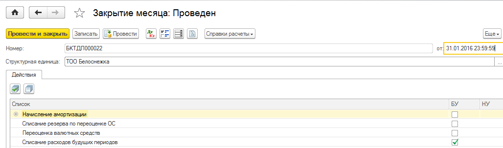 - Не рассчитывать — при выполнении регламентной операции Списание расходов будущих периодов документа Закрытие месяца сумма РБП не будет относиться на расходы предприятия. Предполагается, что РБП в таком случае будут относиться на расходы самостоятельно ручными операциями.