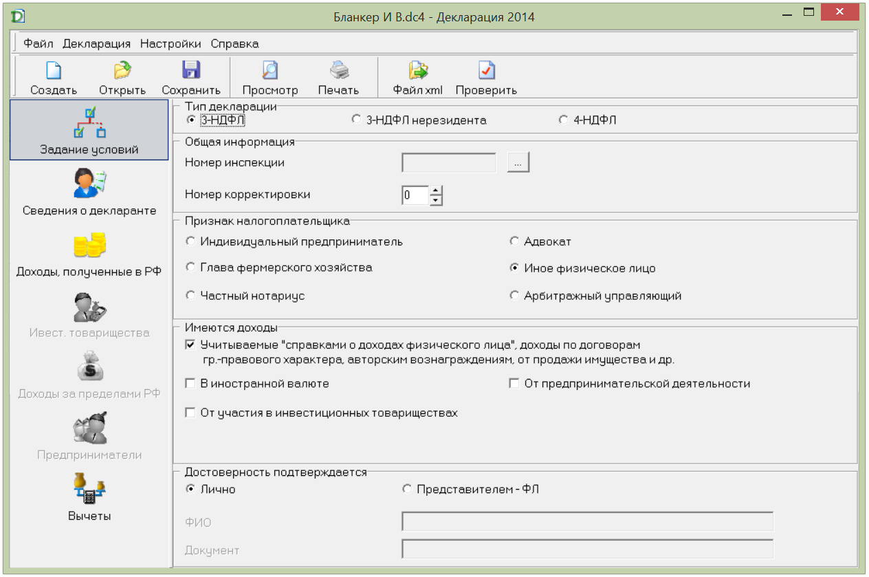 - далее заполнить декларацию, указывая верные данные. При этом необходимо действовать так, как будто декларация заполняется впервые, т.е. не дополнять/исправлять ранее представленные данные, а заполнить декларацию полностью верными данными;