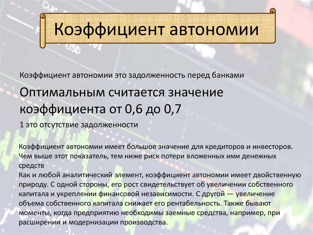 Финансовая автономность компании предполагает полную самостоятельность и независимость фирмы от заемных средств.